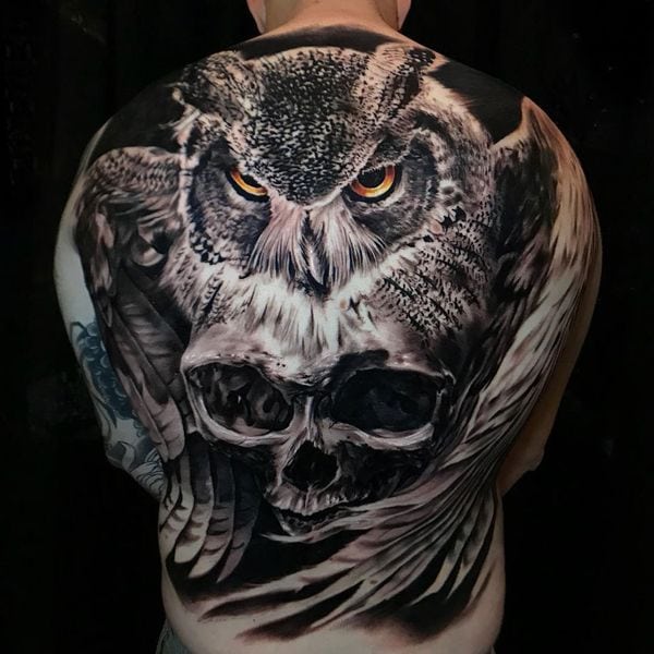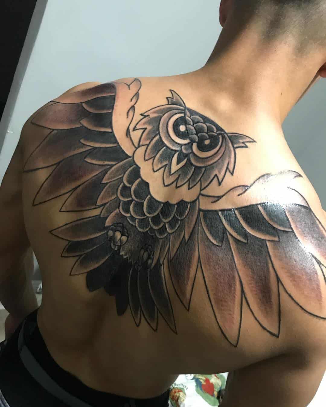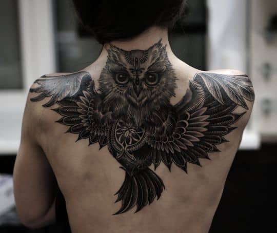 Motyw sowy jest bardzo popularny wśród tatuaży. Taki wzór idealnie będzie wyglądał na plecach. Wystarczy spojrzeć na wiele przykładów.