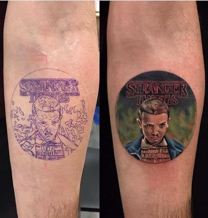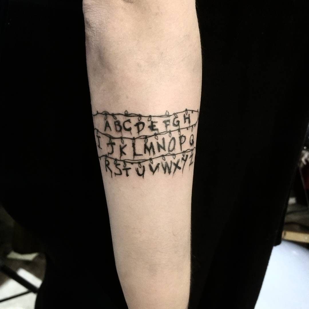 Motyw „Stranger Things” jest bardzo popularny wśród tatuaży. Taki wzór idealnie będzie wyglądał na przedramieniu. Wystarczy spojrzeć na wiele przykładów.