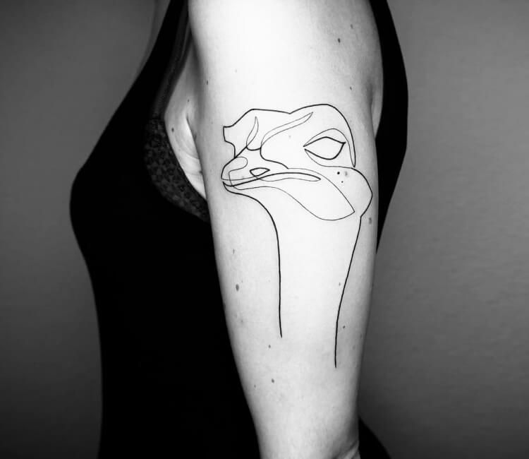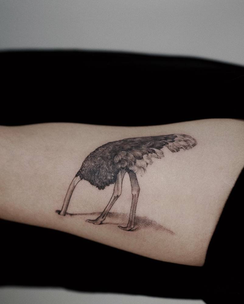 Tatuaż ze strusiem na ramieniu wygląda stylowo. Również tatuaże ze strusiem na klatce piersiowej, nodze, czy plecach będą prezentowały się znakomicie.