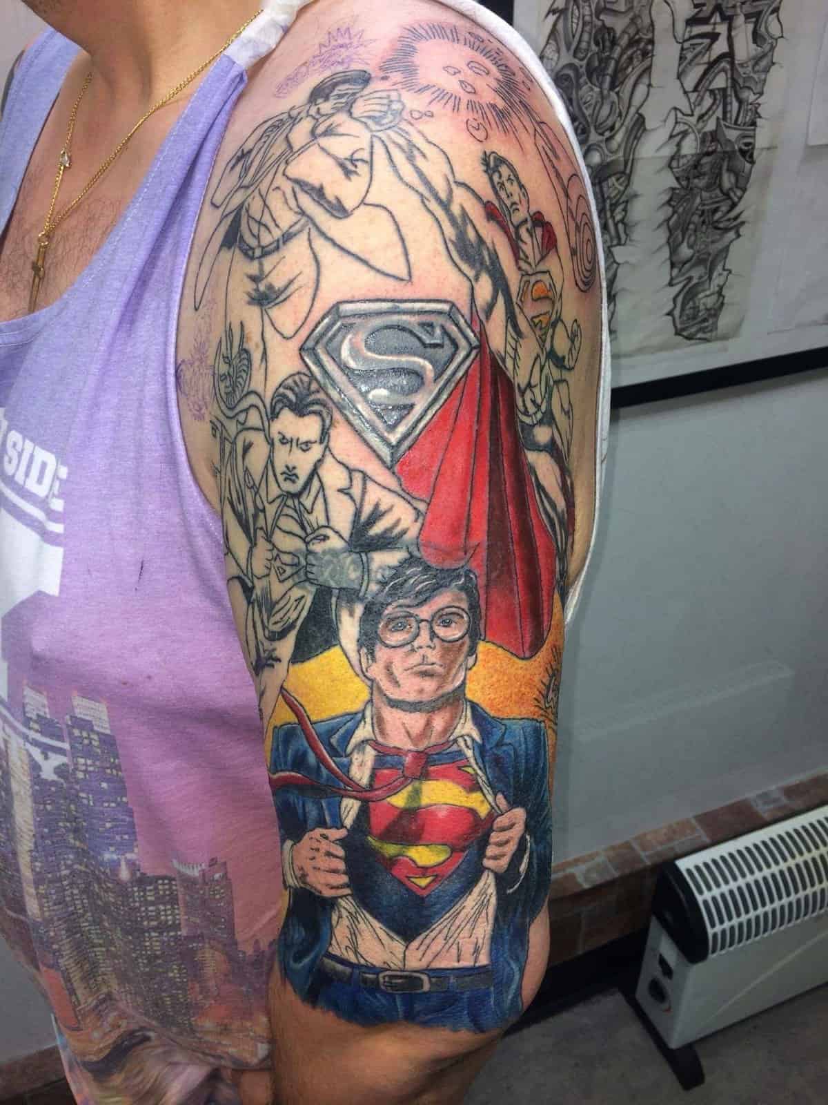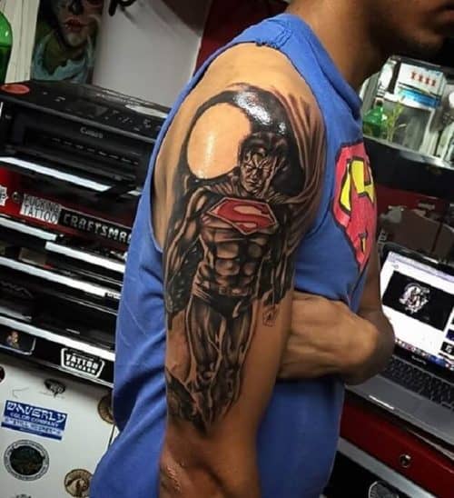 Motyw Supermana jest bardzo popularny wśród tatuaży. Taki wzór idealnie będzie wyglądał na ramieniu. Wystarczy spojrzeć na wiele przykładów.
