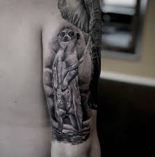 Motyw surykatki jest bardzo popularny wśród tatuaży. Taki wzór idealnie będzie wyglądał na ramieniu. Wystarczy spojrzeć na wiele przykładów.