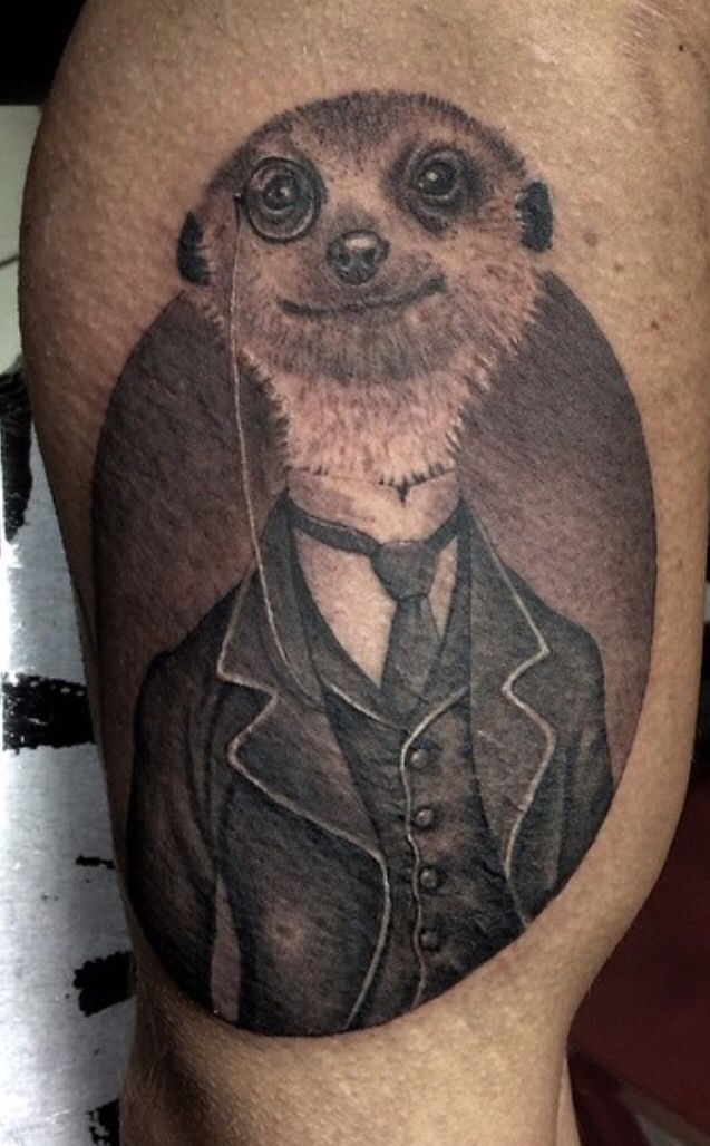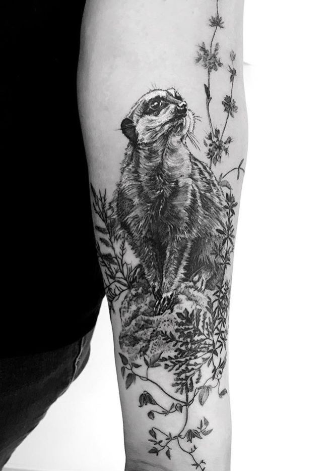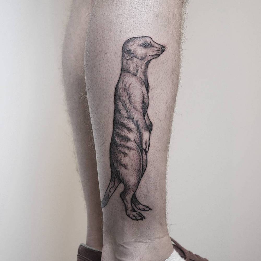 Tatuaż z surykatką na ramieniu wygląda stylowo. Również tatuaże z surykatkami na klatce piersiowej, nodze, czy plecach będą prezentowały się znakomicie.