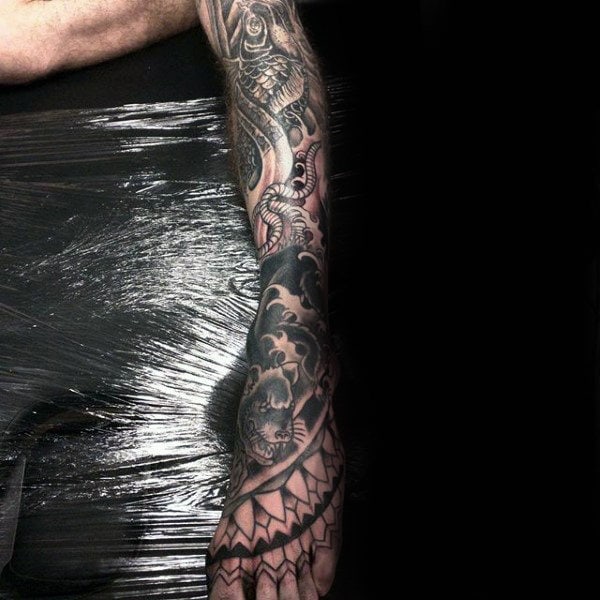 Tatuaż ze szczurem na ramieniu wygląda stylowo. Również tatuaże z wilkami na klatce piersiowej, nodze, czy plecach będą prezentowały się znakomicie.