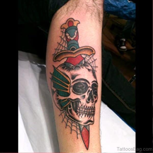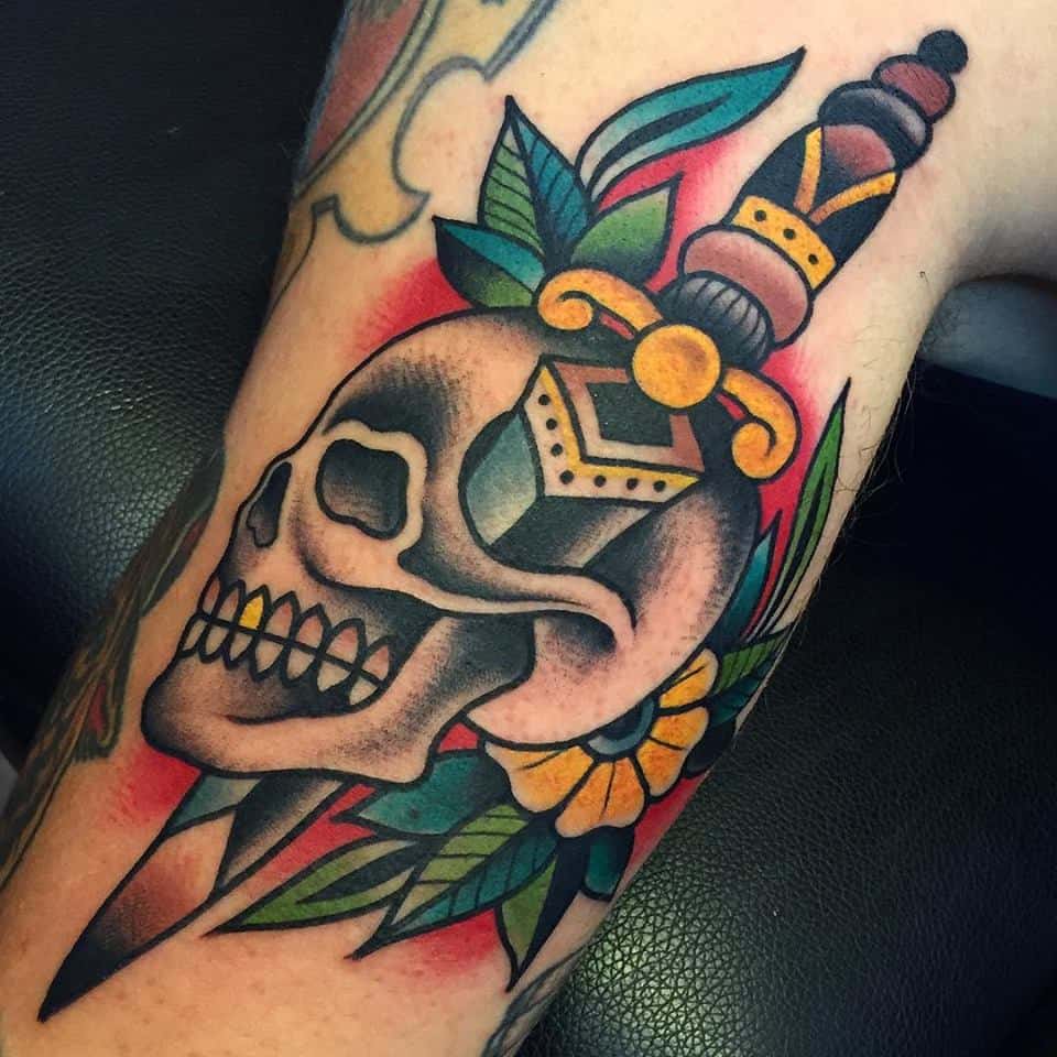 Sztylet i czaszka jako tatuaż sprawdzi się w różnej stylistyce. Może to być kolorowy lub jednobarwny wzór. Sztylet i czaszka i tatuaż może symbolizować dla każdej osoby coś innego. To idealna forma wyrażania siebie.