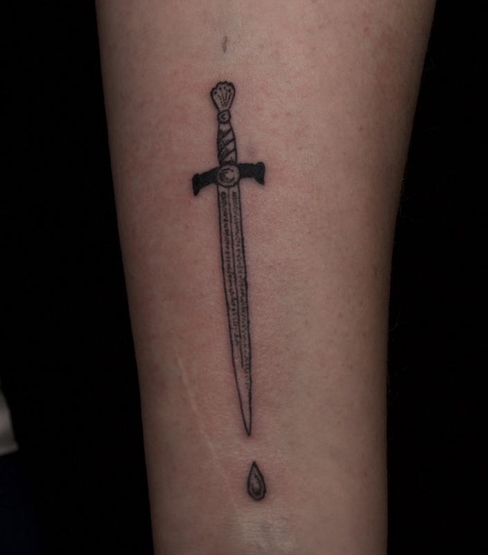 Sztylet na tej części ciała będzie wyglądać znakomicie. Dotyczy to kolorowego jak i jednobarwnego tatuażu. Zapewne zwróci on uwagę wielu osób.