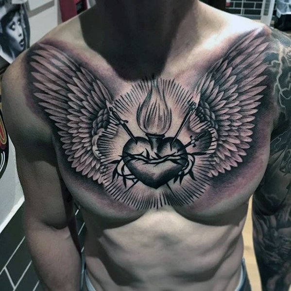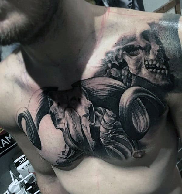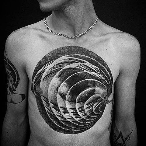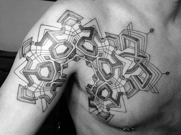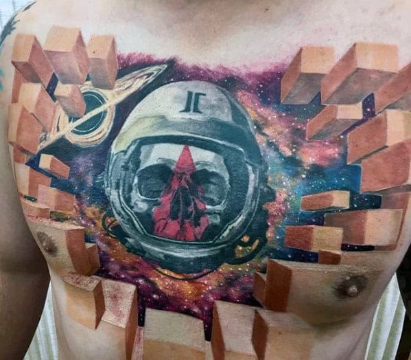 Takie tatuaże nosi wiele osób i możesz się nimi zainspirować. Spójrz na przykłady tatuaży 3D na klatce piersiowej.