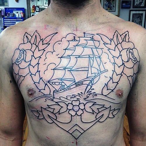 Tatuaż tradycyjnego statku będzie prezentował się dobrze na plecach, na klatce piersiowej, czy też nogach lub rękach. Motyw tradycyjnego statku idealnie pasuje zarówno do tatuażu jednokolorowego jak i wielobarwnego. Wszystko zależy od naszego pomysłu, wizji i podpowiedzi tatuatora.
