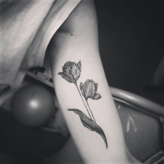 Motyw tulipana jest bardzo popularny wśród tatuaży. Taki wzór idealnie będzie wyglądał na przedramieniu. Wystarczy spojrzeć na wiele przykładów.
