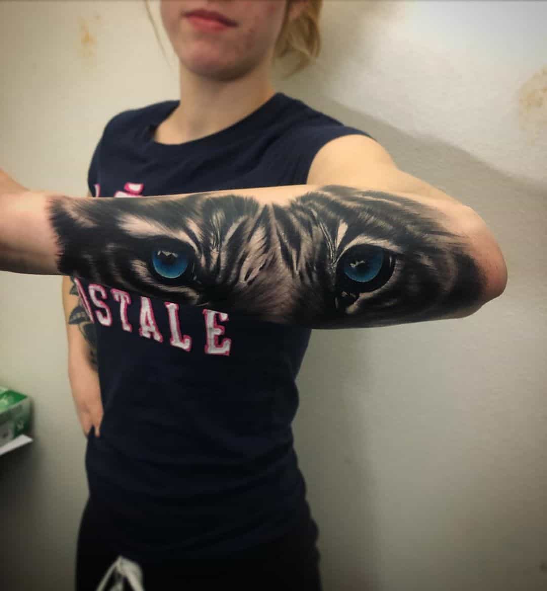 Tygrysie oczy na przedramieniu – wzory tatuażu