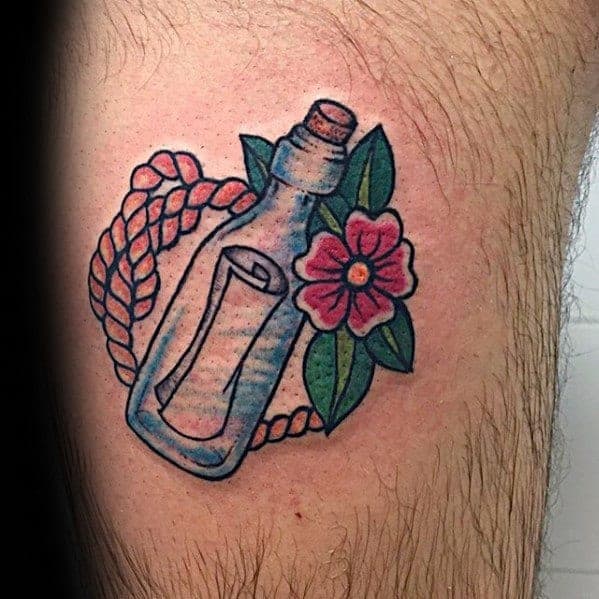 Wiadomość w butelce to jeden z najpopularniejszych i najmodniejszych wzorów tatuażu. Motyw wiadomości w butelce doskonale wygląda na różnych częściach ciała.