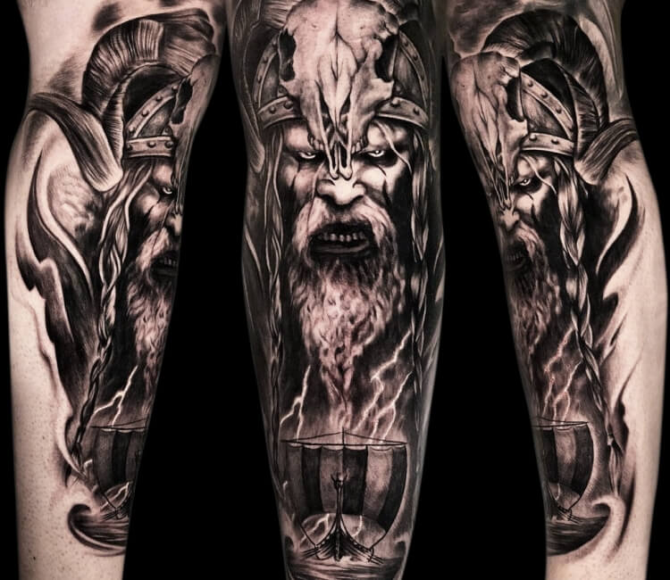 Tatuaż z wikingiem na ramieniu wygląda stylowo. Również tatuaże z wikingami na klatce piersiowej, nodze, czy plecach będą prezentowały się znakomicie.