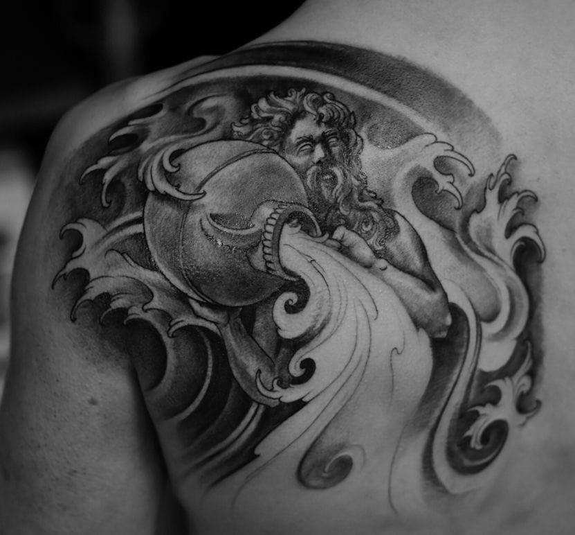 Tatuaże na plecach są bardzo modne. Nosi je wiele osób. Część z nich wybiera motyw wodnika. Prezentuje on się na znakomicie na tej części ciała.