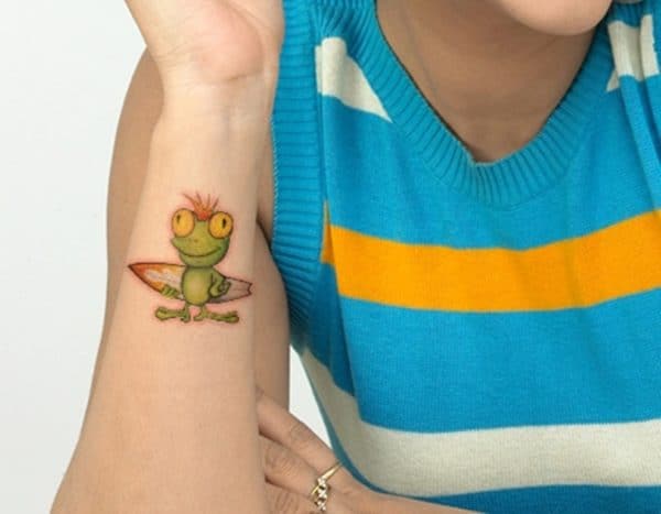 Motyw żaby jest bardzo popularny wśród tatuaży. Taki wzór idealnie będzie wyglądał na nadgarstku. Wystarczy spojrzeć na wiele przykładów.