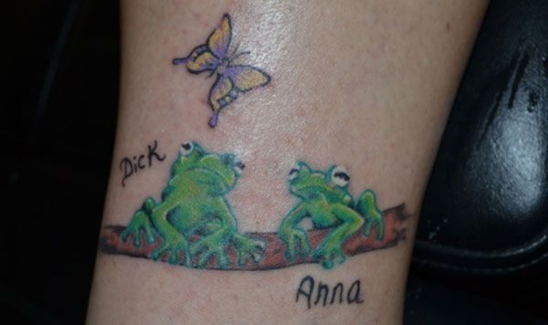 Żaba na tej części ciała będzie wyglądać znakomicie. Dotyczy to kolorowego jak i jednobarwnego tatuażu. Zapewne zwróci on uwagę wielu osób.