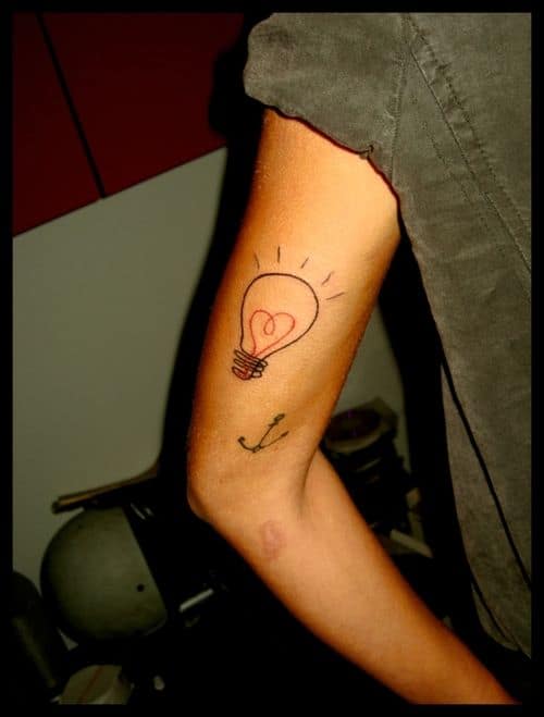 Motyw żarówki jest bardzo popularny wśród tatuaży. Taki wzór idealnie będzie wyglądał na ramieniu. Wystarczy spojrzeć na wiele przykładów.