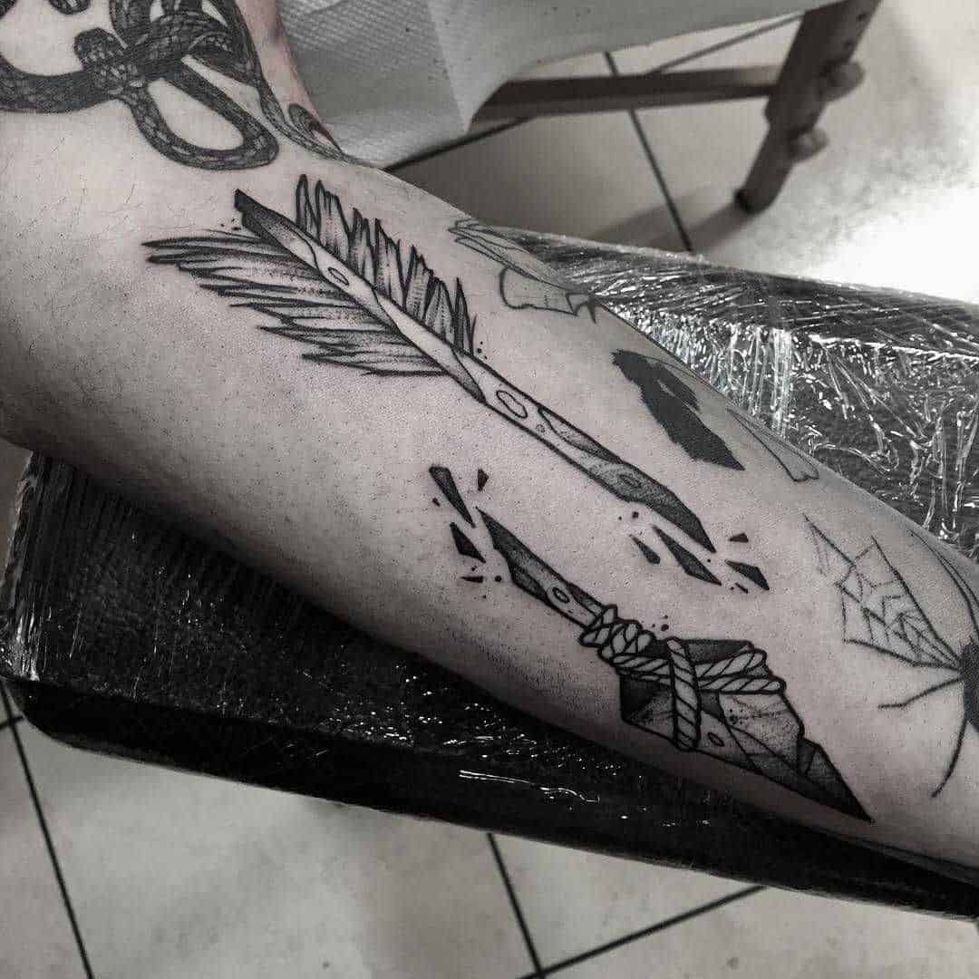 Złamana strzała na przedramieniu – wzory tatuażu