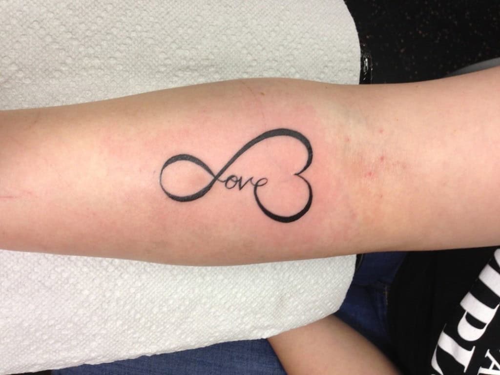 - Tatuaż z dodatkowymi elementami – np. znak nieskończoności przepleciony z datą urodzin, imieniem bliskiej osoby, czy motywem graficznym.