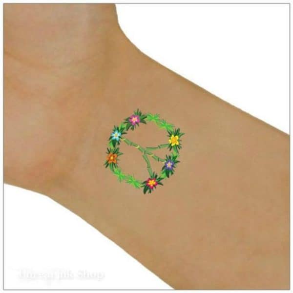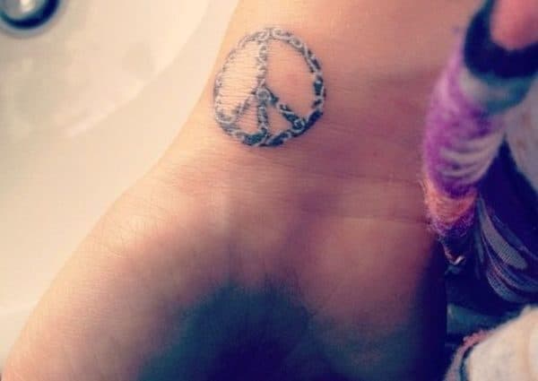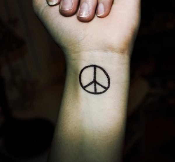 Znak pokoju jest bardzo popularny wśród tatuaży. Taki wzór idealnie będzie wyglądał na nadgarstku. Wystarczy spojrzeć na wiele przykładów.
